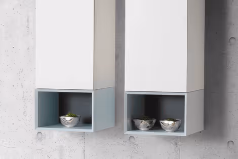 Sona kombiniert mit verschiedenen Lackfarben: reinweiss, naturgrau und Sky blue