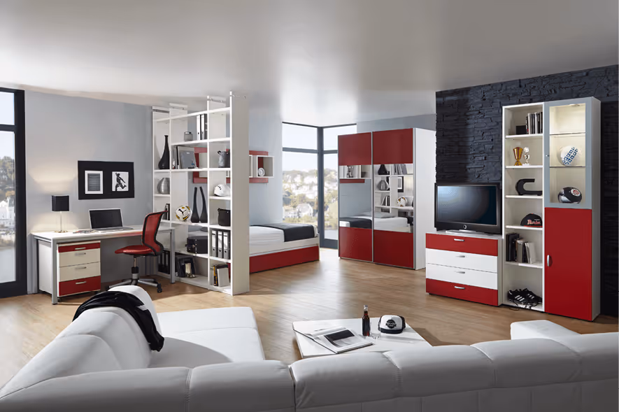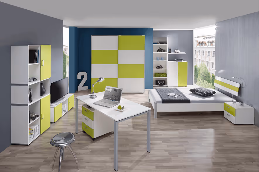 Stellen Sie das Kinder-/Jugendzimmer nach Lust und Laune zusammen. Wählen Sie zwischen vielen verschiedenen Farben und ergänzen Sie bsp. später einmal ein Pult oder eine Kommode aus dem selben Programm.